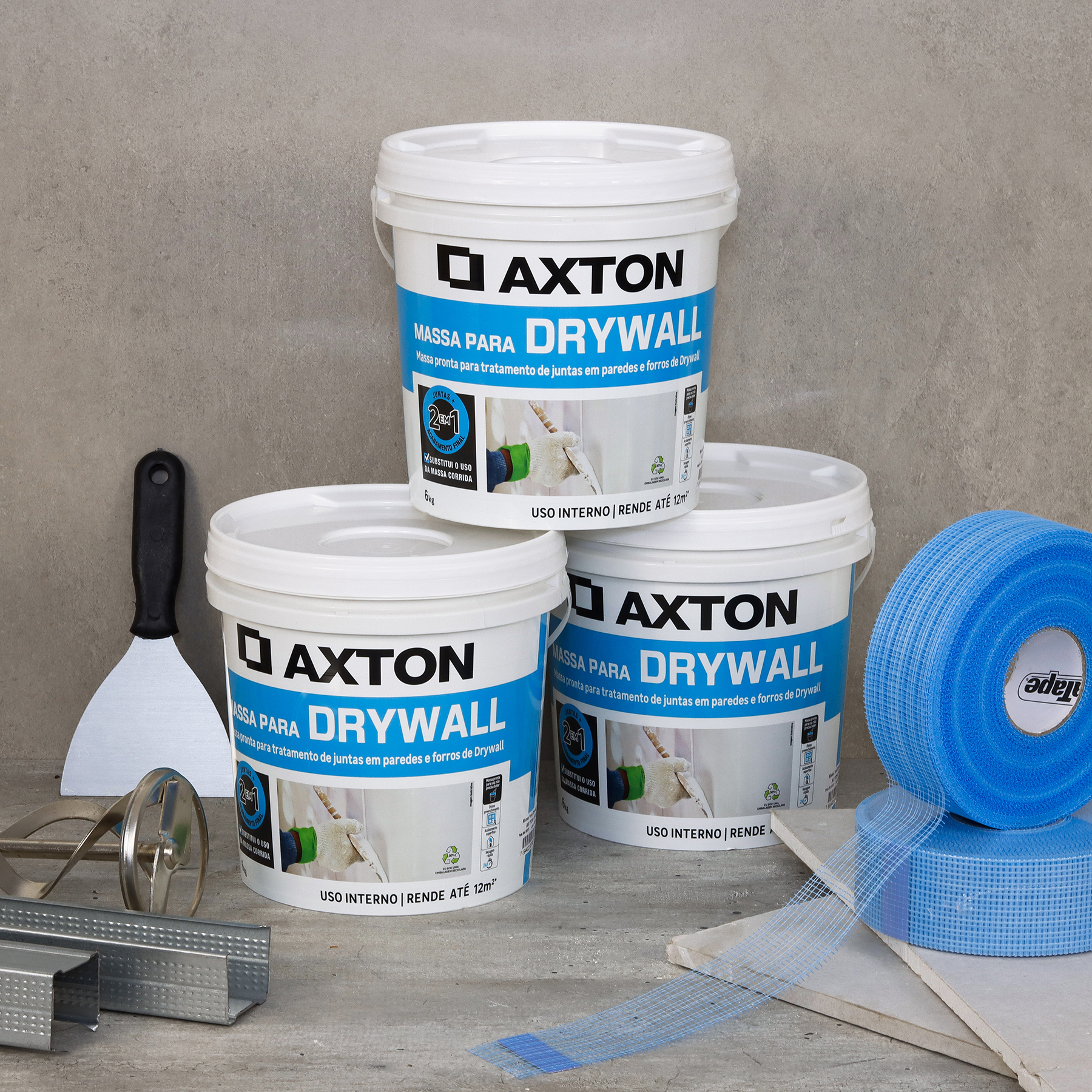 A Massa Pronta para Drywall Axton é a solução ideal para quem busca agilidade e qualidade no acabamento de paredes e forros em gesso acartonado. Sua fórmula 2 em 1 permite o tratamento de juntas e o acabamento final, dispensando o uso de massa corrida — mais praticidade e menos etapas na sua obra!