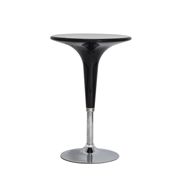 Modelo: Mesa Bombo Base Cromada Preta Tampo: ABS Base: Aço Cromado Diâmetro: 61 cm Altura Total: Alta 92 cm - Baixa 67 cm Quantidade por caixa: 2 Peso Unitário: 10 kgs Medida Embalagem Profundidade: 77 cm Largura: 73 cm Altura: 65 cm