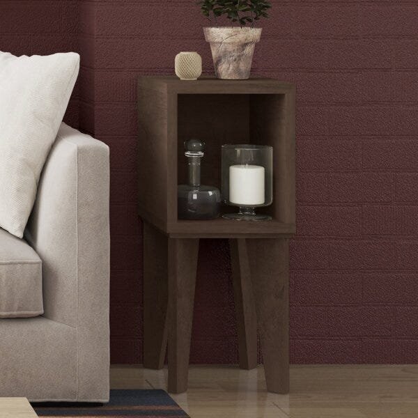 Mesa canto tubi rv móveis noce. Mesa canto tubi ideal para ser utilizada na sala como mesa lateral ou no quarto como mesa de cabeceira do box, produzido em chapa de 20 mm no nicho e nos pés com sapata antiumidade, praticidade de montagem. Formato: quadrado peso (kg): 7 garant...