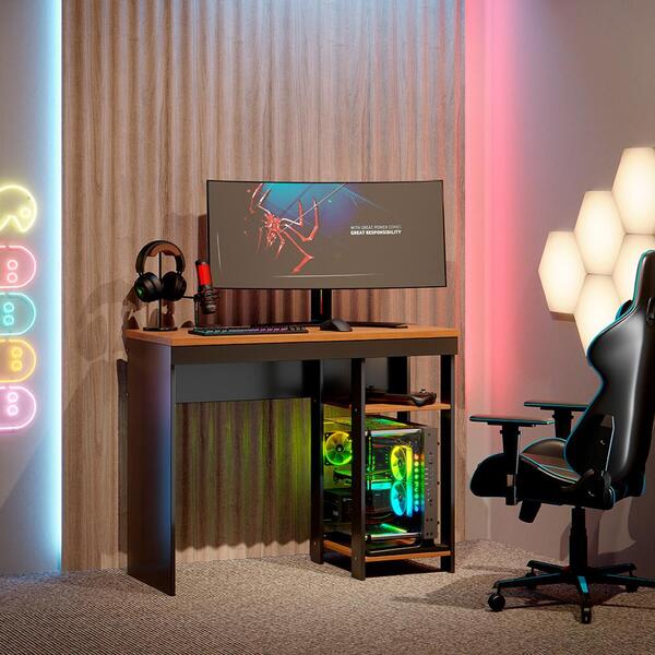 A escrivaninha vai deixar o seu ambiente moderno e confortável para você curtir os melhores momentos de jogo e descontração. Produzida em mdf/mdp com acabamento semibrilho, que garante maior durabilidade e resistência ao produto. Conta com 2 prateleiras para organizar seus pe...