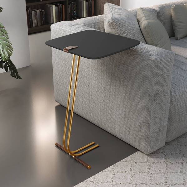Mesa Lateral Preto Com Base Ouro