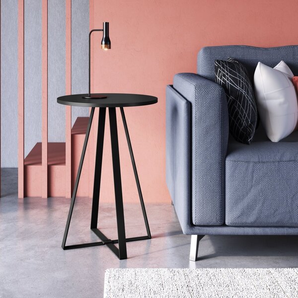 Mesa lateral redonda industrial complementos preto. Mesa confeccionada em mdp 15mm com acabamento bp e estrutura metálica de aço maciço com acabamento em pintura epóxi fosco, materiais que trazem resistência e durabilidade ao produto. A mesa assume um papel importante na deco...