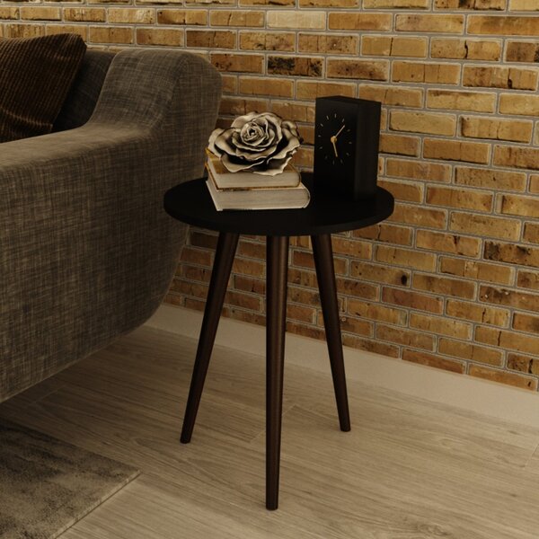 Mesa lateral redonda rt 3144 preto. A mesa lateral redonda, rt 3144, da movelbento é produzida em mdp 15mm, pé torneado de madeira maciça. Traz o charme e elegância da linha retrô para seu lar, ela combina com qualquer ambiente, além de ser linda. Formato: redondo peso (kg):...
