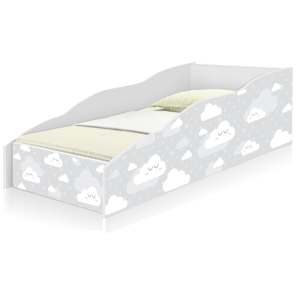 Cama infantil play nuvens cinza a cama, com adesivagem nos painéis, conta com design moderno e direcionado para o conforto, bem-estar e segurança da criança, conferindo um ambiente alegre, colorido e divertido. bordas arredondadas evitando riscos de acidentes, adesivos em v...