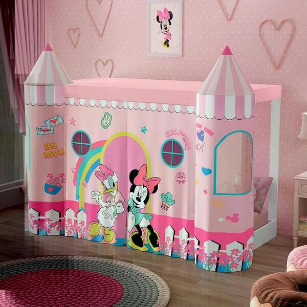 Com a mini cama no tema minnie, a brincadeira ficará mais divertida e vai transformar o quarto em um ambiente cheio de magia e alegria. Esta é a cabana perfeita para quem procura conforto e diversão no mesmo produto. A cortina do dossel pode ser aberta facilmente para os pais...