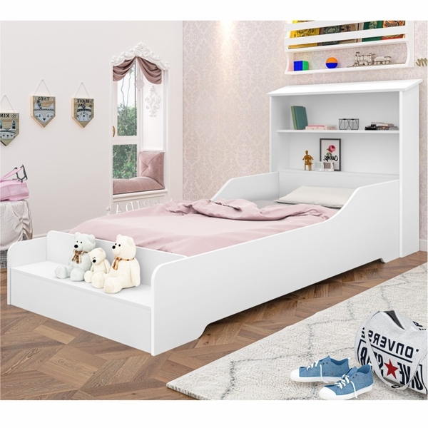 Cama infantil menina nina branca a cama infantil branca possui design acolhedor que proporciona conforto e segurança. possui duas prateleiras e uma bancada, ótimos para decorar, criando um ambiente mais alegre e dinâmico, estimulando a criatividade e imaginação. dimensões ...