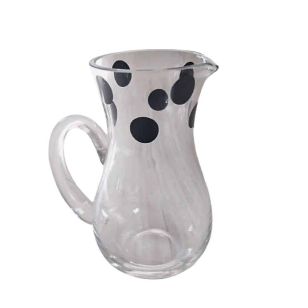 Mini jarra  100ml vidro  esta linda mini jarra é fabricada em vidro e com capacidade para 100 ml, uma peça elegante e que não pode faltar em sua mesa, na hora de servir um jantar especial para seus convidados e familiares. Com ela você deixa o ambiente mais sofisticado e prático. Medida 10x5x6cm estampa polka dots