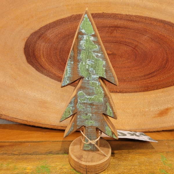 História: Miniatura de pinheiro em madeira rústica com pátina.