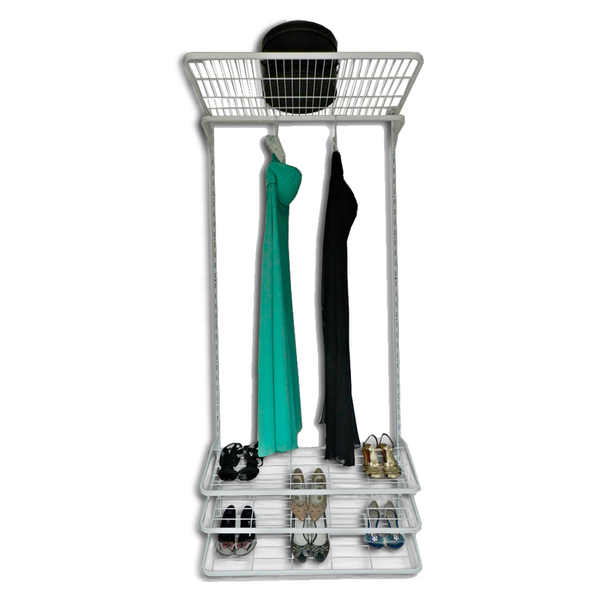Qtde    item1    maleiro 90cm branco1    cabideiro 90cm branco3    sapateira 90cm branco2    cremalheira de 200 cm - simplesquantidade de peças organizadas: este é um projeto personalizado para seu ambiente, nele será possível guardar de forma arejada e organizada:            27     roupas penduradas;        15     pares de calçados;        *valores aproximados vantagens dos aramados modulares:1. Garantia de 1 ano2. Hipoalérgicos - inibem a formação de fungos como o bolor3. Modulável - as peças podem ser intercambiadas em módulos de mesma dimensão4. Escalonável - possibilidade de corrigir altura entre as peças a qualquer momento sem a ajuda de ferramentas ou mão de obra especializada5. Material - aço carbono 1020 com pintura eletrostática a pó6. Carga - 30 kg por pç (peças de 1.20m - 20kg)tempo de montagem: aproximadamente 30'acompanha o pedido:- instruções de montagem- buchas, engates e parafusos.- nota fiscal cor aramado: branco