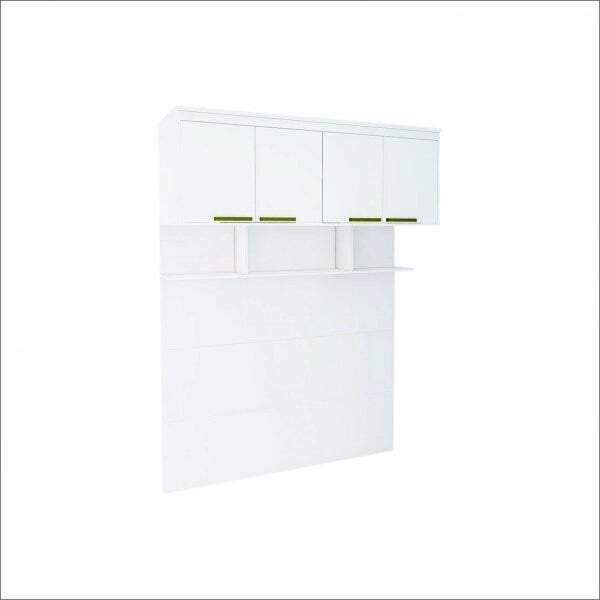 Módulo ponte para cama casal branco. Módulo desenvolvido com material 100% em mdf e com acabamento touch com 7 camadas de tinta, agregando resistência e durabilidade ao seu móvel. As portas são embutidas exibindo visual de um tamponamento seguindo as tendência do mobiliário i...