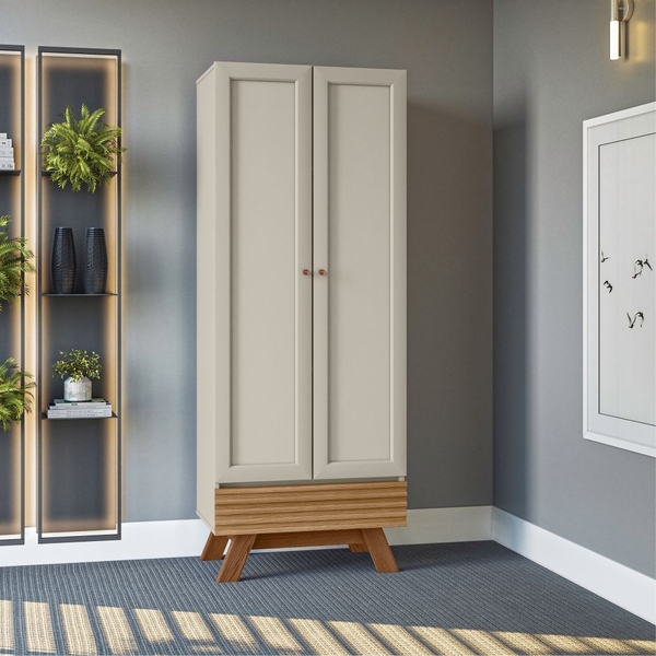 O multiuso é a escolha ideal para auxiliar na organização da sua casa. com estrutura em mdp e mdf, possui duas portas de abrir em mdf com dois puxadores de cobre. dispõe de três prateleiras em mdp com espessura de 15mm e uma gaveta com corrediça telescópica. seus pés em estilo retrô são um charme e traz um design moderno a qualquer cômodo. medidas do produto: altura: 185 cm largura: 71 cm comprimento: 40 cm informações do produto: cor: amêndoa off white material: mdp e mdf portas: sim (2) puxadores em cobre prateleiras: sim (3) gaveta: sim (1 com corrediça telescópia) suporta 20 kg distribuídos