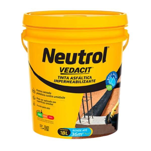 Descrição do produto\no neutrol é uma tinta asfáltica de grande aderência e alta resistência química que forma uma película impermeável. É indicado para proteção de estruturas de concreto e alvenaria revestida com argamassa em contato com o solo sujeita a águas