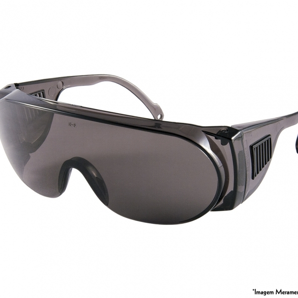 Oculos protecao panda fume - kalipso ca nº 10.344 - óculos de segurança constituídos de armação e visor em uma única peça de policarbonato com meia borda superior e meia proteção nas bordas. As hastes, do tipo espátula, são confeccionadas do mesmo material da armação, possuem...