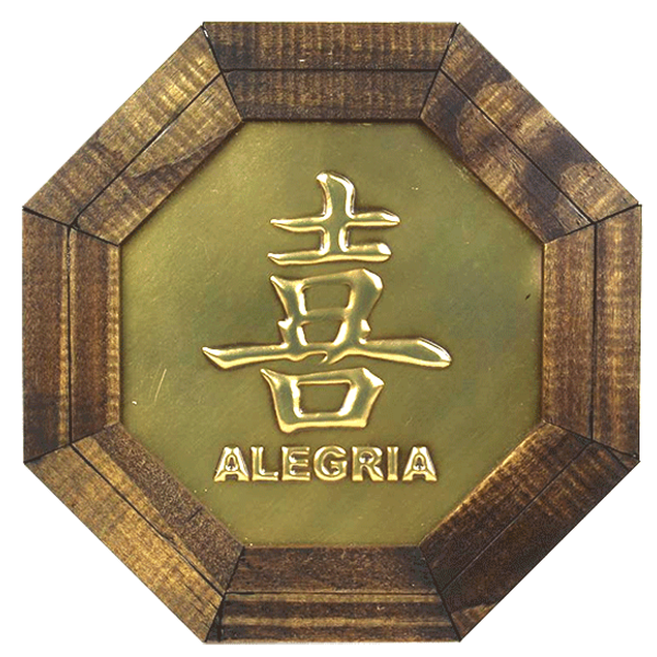 O ideograma japon ecirc;s alegria atrai a energia da alegria para o ambiente e para toda a casa. Os ideogramas japoneses s atilde;o oriundos de muitos dos caracteres desenvolvidos na china h aacute; mais de dois mil anos. Nbsp; no feng shui os quadros podem ser usados para representar aspira ccedil; otilde;es energias e sensa ccedil; otilde;es positivas. nbsp; o que eacute; um ideograma: ideograma eacute; um nbsp;s iacute;mbolo gr aacute;fico utilizado no sistema de escrita ideogr aacute;fico onde cada elemento pode representar um objeto uma ideia ou um conceito abstrato. ... Atualmente os s iacute;mbolos ideogr aacute;ficos ainda comp otilde;em determinados tipos de escrita do idioma chin ecirc;s nbsp;e japon ecirc;s por exemplo. nbsp; dimens otilde;es: 18 5 x 18 5 x 1 cm (comprimento x largura x altura). peso: 115 gramas. material: quadro octagonal em madeira e metal. nbsp; nbsp; nbsp;