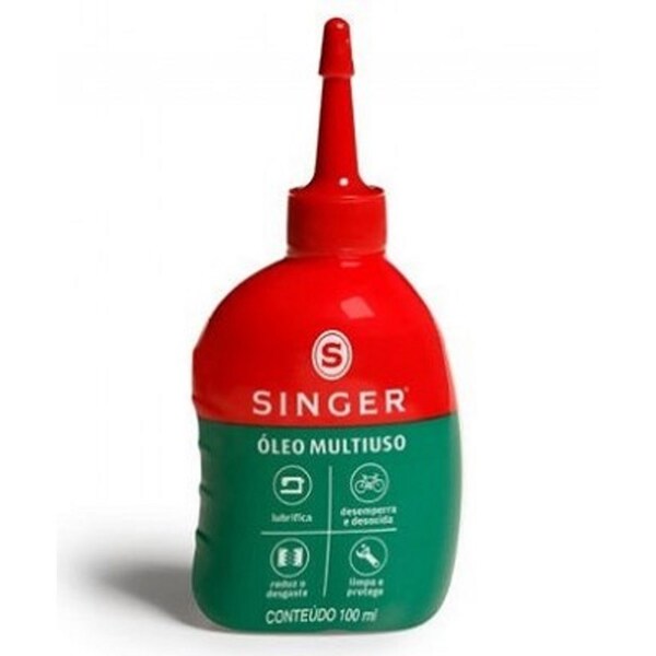 O óleo lubrificante singer é um composto finíssimo de óleos selecionados, que garante maior ação penetrante, lubrificação e conservação mais duradouras. Seu uso frequente evita desgastes em todos os aparelhos domésticos, bicicletas, máquinas de costura, ciclomotores, automóveis, trincos, dobradiças, engrenagens, entre outros. Por sua alta qualidade e tradição, é o mais consumido óleo lubrificante para usos diversos