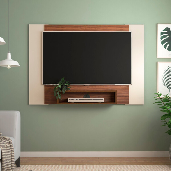 Painel para tv até 47" 20x80cm lateral reversível 1 nicho e prateleira cine artely cedro ou cedro/off whiteos momentos de maior descontração em frente à tv ou em confraternizações com amigos em casa ocorrem na sala, e o painel cine surgiu para unir o útil ao agradável. Útil, ...