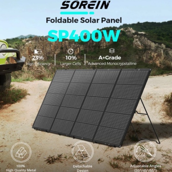 Painel solar de 400w - dobravel, voltagem 33.6v, corrente 11.9a, eficiencia de 23%