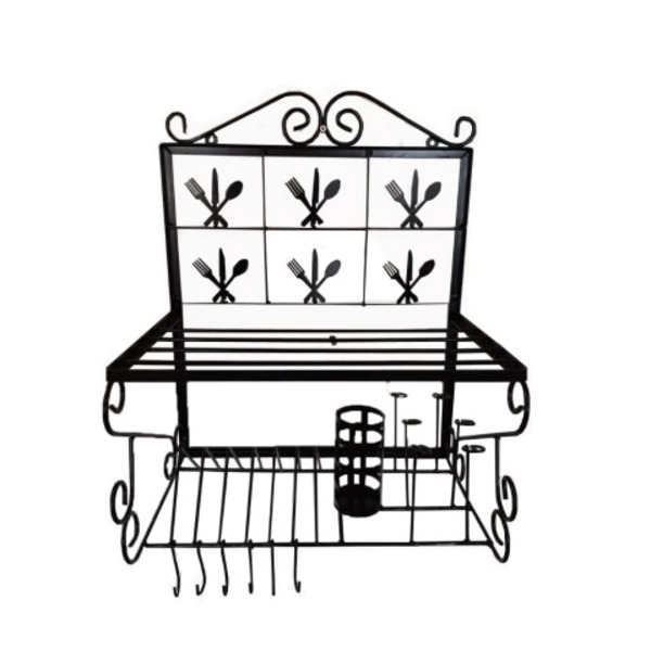 Traga um toque campestre para a decoração da sua casa com itens de inspiração rústica, como é o caso deste suporte para cozinha produzido em ferro. Ele possui ganchos em sua parte superior, permitindo pendurá-lo na parede e diversos compartimentos para dispor suas louças. Um item ideal para levar mais funcionalidade para a sua composição.Dimensões:comprimento = 0,60m altura = 0,75m profundidade = 0,31m.