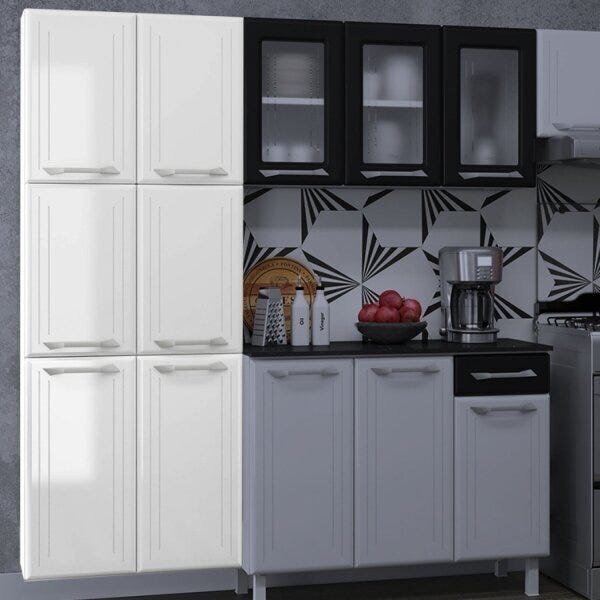Paneleiro duplo de aço topázio branco. O paneleiro duplo de aço da topázio tem amplo espaço interno e prateleiras bem posicionadas, por isso é a solução ideal para organizar a sua cozinha. Todo fabricado em aço, esse móvel passa por um rígido processo de pintura eletrostática e anticorrosiva, que confere alta resistência e durabilidade. Possui pés reguláveis, fabricados em polipropileno, material que não absorve umidade. O espaço interno é ideal para a organização de diversos utensílios de cozinha, acomodando tudo de maneira muito funcional. Como conservar seu produto: - a limpeza deve ser feita com pano macio e seco ou levemente umedecido com água e sabão neutro. Não devem ser utilizados produtos como palha de aço ou qualquer material que arranhe a superfície de seu produto. - evite guardar substâncias como sal, vinagre, limão, cebola, etc. Em contato direto com o móvel. - recomenda-se forrar as prateleiras com papel ou plástico liso nas áreas de maior atrito. Informações adicionais: montagem: este produto é entregue desmontado, sendo a montagem por conta do cliente. Acompanha manual de instruções. Garantia: 12 (doze) meses para defeitos de fabricação. Imagens ambientadas: são meramente ilustrativas e podem apresentar itens que não compõem o produto (como eletro, panelas e decorativos). Cores: podem variar de acordo com o monitor, a iluminação do ambiente ou sua percepção visual. Estilo: clássico modular: sim peso (kg): 23.45 garantia: 12 meses altura (cm): 180 acabamento: pintura largura (cm): 70 peso bruto (kg): 26.56 possui pés: suspenso possui portas: sim tipo de porta: bater possui gavetas: não suporta até (kg): 75 possui espelhos: não profundidade (cm): 29 escala de brilho: brilhante serviço montagem: 114259443 material da porta: aço origem do produto: nacional tipo de paneleiro: paneleiro duplo ambiente principal: cozinha material principal: aço possui prateleiras: sim acabamento da porta: pintura material do puxador: plástico sapatas niveladoras: não material da dobradiça: metalica material da prateleira: aço acabamento da prateleira: pintura tipo de puxador da porta: externo escala de brilho da porta: brilhante peso máximo por prateleira: 15 tipo de armário de cozinha: paneleiro material do puxador da porta: plástico material do puxador da gaveta: plástico escala de brilho da prateleira: brilhante tipo de dobradiça/corrediça da porta: simples material da dobradiça/corrediça da porta: metálica fabricante: telasul marca: telasul cor flex: não tonalidade: branco cor interna: branco cor do produto: branco itens inclusos: 1 paneleiro, manual de montagem e kit ferragens cor predominante: branco linha ou coleção: mirage new quantidade de portas: 6 portas quantidade de gavetas: não possui