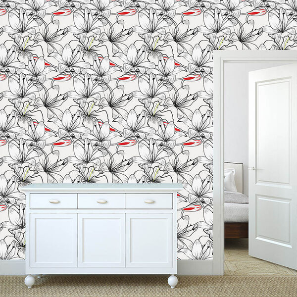 Papel de parede adesivo - hibiscos - 036ppf - os papéis de parede da allodi ficam bem em todos os ambientes na sala no quarto na cozinha na varanda e até no cantinho do churrasco dão um toque de qualidade na decoração do ambiente. - fabricados em vinil fosco auto colante...