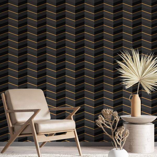 Papel De Parede Chevron Preto-60x300cm
