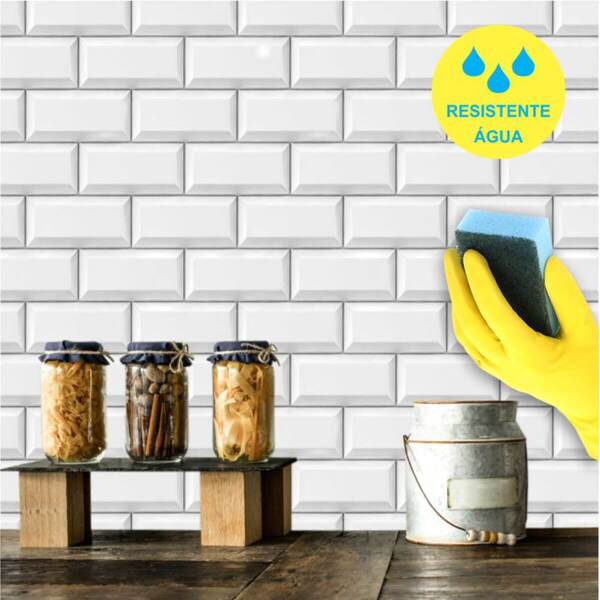 Papel de parede lavável metrô o papel de parede lavável metrô, possui uma camada protetora! Produto com maior durabilidade, pode ser aplicado sobre azulejos e paredes, em locais como cozinhas, perto do fogão, banheiros (dentro e fora do box), área gourmet e áreas externas (devido a sua exclusiva camada protetora). Limpeza fácil, podendo utilizar bucha (lado amarelo/espuma) e detergente neutro, assim a limpeza do dia a dia não interfere na qualidade do produto!