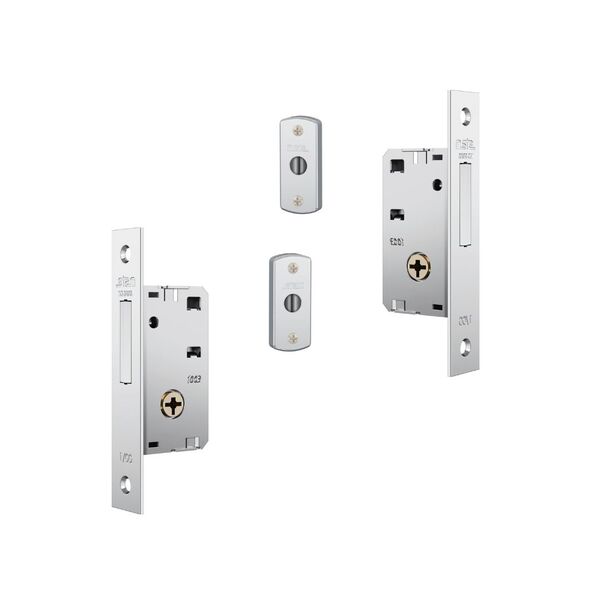 ProdutoJogo Fechadura Auxiliar Trava Segurança Tetra Stam 1003 Cromada Inox 18mm Dupla Par Estreita Ferro Aço Alumínio