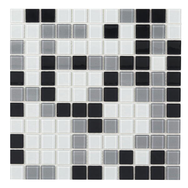 Pastilha Adesiva de Vidro 30x30cm Realescla Preta, Cinza e Branca Vidro Real