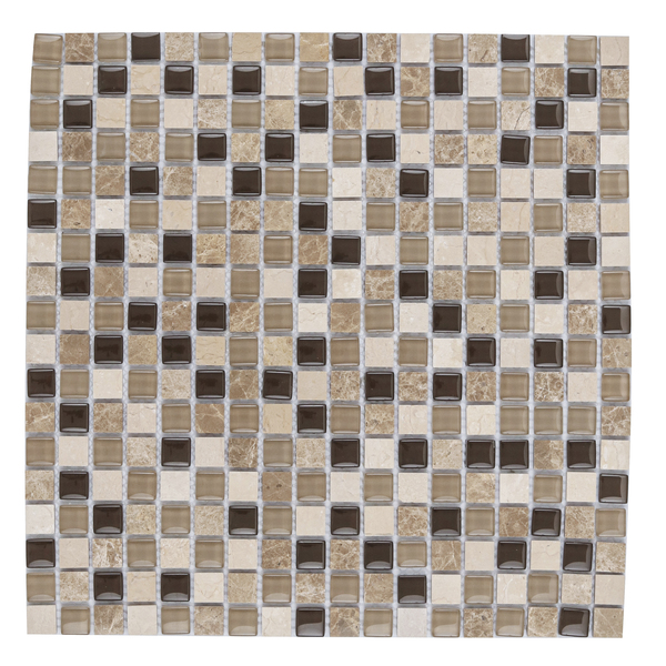 Pastilha de Pedra e Vidro 1,5x1,5cm Mescla MT701 Bege e Preta Glass Mosaic