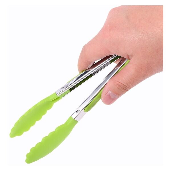 Esse pegador serve para grelhar, servir salada ou massas, ajudar para manusear os alimentos, evitando contato direto com as mãos. eles fornecem uma maneira de mover, girar e virar os alimentos com precisão delicada ou pegar uma porção completa de uma só vez. podem ser utilizados em qualquer teflon, panela ou frigideira. O pegador tem travamento e é feito com aço inoxidável e silicone, auxiliando desde a salada até o alimentos na frigideira. Com eles, você pode dizer adeus aos riscos e danos nas suas panelas e frigideiras favoritas. Estes são utensílios de silicone, livres de bpa, resistentes ao calor de até 230°c. Aumente a durabilidade dos seus utensílios de cozinha, diminuindo os resíduos gerados na sua rotina.  especificações: cor: vermelho, amarelo e verde material: aço inoxidável e silicone temperatura: até 230ºc dimensões: 29,5 cm peso: 83g características: durável e flexível - não derretem em altas temperaturas como as de plástico, são resistentes, não descascam, racham, empenam, tampouco absorvem odores ou enferrujam. Design ergonômico - núcleo reforçado, verso de superfície sólida, design ergonômico e fáceis de segurar. Ótimo para assar, misturar, churrasco, acampamento, preparar cobertura de bolo, ovos, panquecas e remoção de alimentos. Alta qualidade - não precisa mais se preocupar com pinças enferrujadas ou derretidas. Nossas pinças de aço inoxidável são fabricadas e resistente ao calor de até 230ºc. Seguro para água quente e antiaderente de alta qualidade. livre de bpa, as pinças com borda de silicone não arranham seus utensílios de cozinha, nem enferrujam ou lascam nos alimentos.  portátil e aderentes - função de travamento mecânico e presilha projetada para um conveniente armazenamento - as pontas e alças de silicone proporcionam uma aderência fácil a comida e são confortáveis ao usar.  levante alimentos pesados com confiança - você pode facilmente agarrar e levantar seus alimentos. Aprecie-o ao servir sua salada, macarrão ou seu churrasco. É ótimo usá-la para cozinhar em suas férias, fogueira, acampamentos e atividades de camping e, claro, para restaurantes, cozinheiros gourmet e outros usos comerciais. benefícios ambientais: redução de resíduos por pegadores de plástico este pacote contém: 1 x pegador pinça de silicone