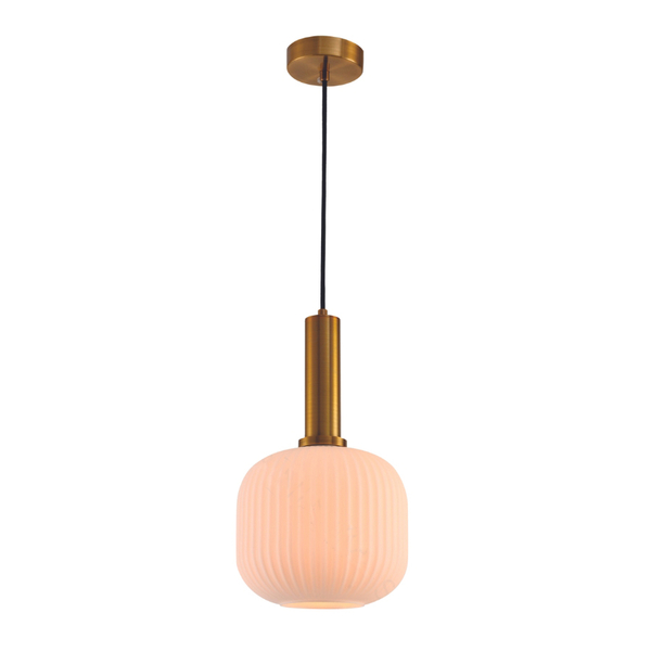 Cód: dcd04040pendente dourado vidro brancosoquete: 1*e27 (lâmpada não inclusa)material: vidro e alumíniocor: branco e douradodimensões cúpula: 18x20cm (axl)canopla: ø12cmcomprimento do cabo: 120cm