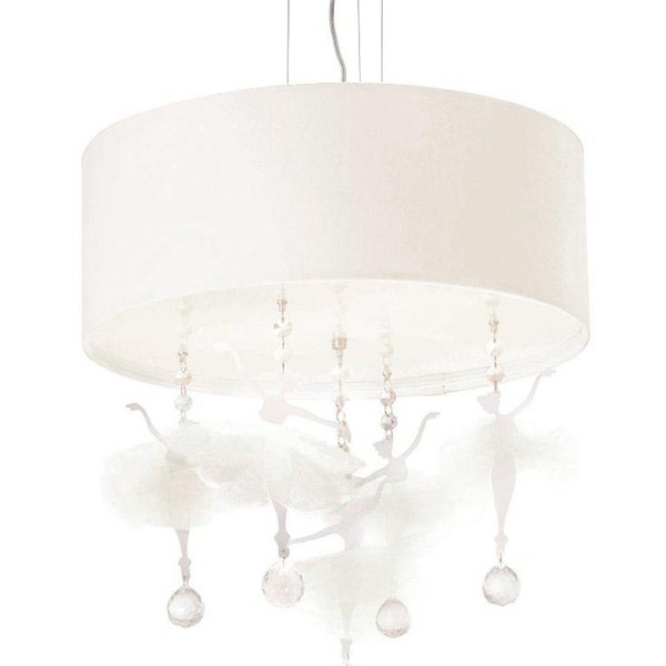 Pendente bailarinas marca: tom luz modelo ideal para compor a decoração dos quartinhos infantis. Proporciona uma iluminação aconchegante ao ambiente. Medida total com os pingentes: 50x45 cúpula 50x15 cúpula produzida em psai de alto impacto e revestida em tecido; composição do tecido: algodão cor: branco bailarinas em ps; saias das bailarinas em tule branco; correntes com castanhas de cristais k9 transparentes; bola de cristal k9 30mm quantidade de pingentes: 05 unidades bivolt (110/220) capacidade para 3 lâmpadas e-27 (não inclusas); parafusos (não inclusos) embalagem: caixa de papelão