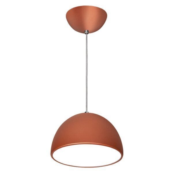 Pendente luminária cúpula jd molina 7631 . Os pendentes são indicados para áreas internas,  e propiciam uma iluminação ampla e aconchegante. Uso ideal para mesa de jantar, balcões, bancadas, mezaninos ou laterais de cama, substiuindo abajures. Estilo: moderno peso (kg): 0.9 garantia: 03 meses voltagem: bivolt altura (cm): 17 tipo de soquete: e27 acompanha lâmpada: não ambiente principal: cozinha ambiente de iluminação: interno comprimento do cabo (cm): 133 material principal iluminação: alumínio fabricante: jd molina marca: jd molina tonalidade: cobre cor: cobre