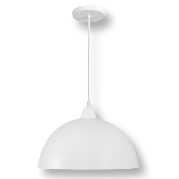 Pendente meia lua deluxe branco o pendente meia lua deluxe é uma peça decorativa, servindo para atender o exigente mercado da iluminação, com tecnologia de ponta. pendente redondo em alumínio, com copinho e furos superiores que trazem detalhes na iluminação do teto. cabo d...
