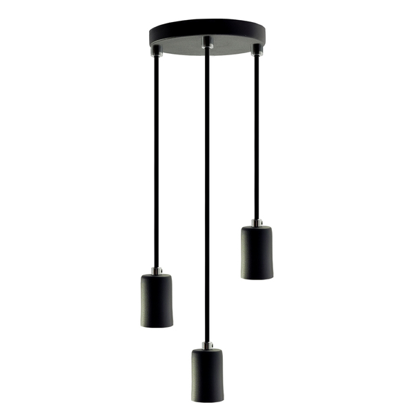 Pendente soquete copinho e27 preto - triplo   os pendentes são uma ótima opção decorativa e moderna, além de deixar a luminosidade mais próxima dos pontos que você almeja destacar, sendo ideais para iluminar mesas de jantar, bancadas na cozinha, mesas de escritório, quartos...