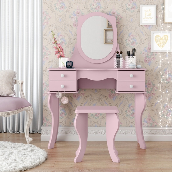 Penteadeira princesa com banqueta, 4 gavetas e espelho - rosa a penteadeira princesa é feita para o quarto da sua filha, onde ela vai poder se arrumar e se sentir como um verdadeira princesa. possui quatro gavetas com corrediças metálicas, ideias para guardar os objetos pre...