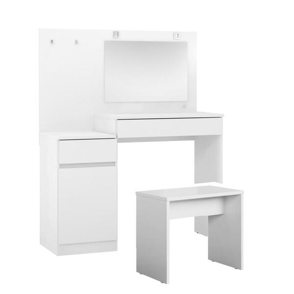 Essa penteadeira é perfeita para quem procura facilidade na hora de organizar seus itens de maquiagem e cuidado pessoal! Ela conta com leds junto ao espelho, que ajudam a não fazer sombra na hora que você estiver se maquiando! Ela ainda conta com uma gaveta central com divisórias, e um compartimento lateral adicional, contendo uma porta e gaveta, complementando ainda mais a funcionalidade desta incrível penteadeira produto feito em mdp. Acompanha espelho e luminária led dimensões do produto: altura: 134 cm largura: 109 cm profundidade: 40 cm informações do produto: material principal: mdp cor: branco portas: sim (1) gavetas: sim (2).com corrediças telescópicas espelho: sim (1) iluminação: sim (1). Luminária com dois leds peso suportado por gaveta: 3kg peso suportado no tampo: 9kg peso suportado no tampo lateral: 7kg peso suportado compartimento lateral: 6kg itens inclusos: 01 penteadeira manual de montagem kit completo para montagem e manual de instruções garantia: 3 meses contra defeito de fabricação informações adicionais: - fotos meramente ilustrativas do produto no ambiente. - os objetos que ambientam as fotos não acompanham o produto; - verificar descrição e tamanho do produto antes da compra. - avaliar a mercadoria no ato do recebimento e recusar em caso de divergência ou avarias. - mantenha as informações de contato e endereço de entrega atualizados para entrarmos em contato caso necessário. - limpar com flanela ou pano macio seco, não utilizar produtos abrasivos, desengordurantes, álcool ou solvente. Não expor o produto diretamente à luz solar e à umidade. * sugerimos a contratação de um montador profissional para a montagem do produto. Não nos responsabilizamos por avarias causadas no ato da montagem. * não nos responsabilizamos pela montagem e desmontagem do produto no ato da entrega e devolução, assim como os custos gerados nestas situações. * a transportadora entregará o produto no andar térreo do endereço de entrega. * não nos responsabilizamos por subir escadas, corredores e elevadores ou transporte por guincho em apartamentos.