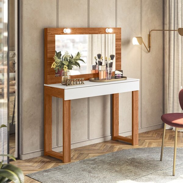 Penteadeira camarim gala cinamomo mel/branco. A penteadeira camarim gala é para você que conta com pouco espaço, mas deseja um local apropriado para o momento da make. Um móvel incrível, no que se refere a funcionalidade, praticidade e organização. Estilo: moderno peso (kg): ...