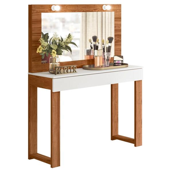 Penteadeira camarim rill 110 cm, uma excelente opção para você que busca design funcional, moderno e fácil de incluir em qualquer ambiente. Estrutura em mdp de 15 e 25 mm, pintura com acabamento em uv (fosco). Composta por gaveta com corrediças telescópicas, amplo espelho, 2 soquetes acoplados na moldura do espelho para lâmpadas (lâmpadas não inclusas), e acompanham sapatas plásticas. Suporta até 20kg. Perfeita para organizar suas maquiagens ou outros produtos proporcionando praticidade e conforto. Este móvel chegará na sua casa separado em 1 volume.dimensõesaltura 136,5 cmlargura 110 cmprofundidade 36 cmsistema de montagemparafusos, pregos e cavilhas.recomendação de limpezalimpar com pano úmido para retirar o pó. Não aplicar produtos abrasivos.produtos de enfeite não estão inclusos.importante saberas imagens são meramente ilustrativas, não acompanham objetos de decoração e eletrônicos.a tonalidade da cor do produto pode variar de acordo a calibração de cores do seu monitor, a iluminação do ambiente ou sua percepção visual.o cliente deve verificar a quantidade de volumes descritos na nota, as condições da embalagem, caso haja algum dano não assine o comprovante de recebimento e recuse a mercadoria.montagem, desmontagem e outras instalações serão de responsabilidade do cliente.não nos responsabilizamos por subir escadas/elevadores ou pelo transporte por guincho em apartamentos. Eventuais despesas são de responsabilidade do comprador.confira as dimensões do produto e certifique-se de que passarão normalmente por supostos elevadores, portas, escadas ou corredores de sua residência.o comprador ou a pessoa que receber os produtos deve verificar se os produtos recebidos correspondem ao mesmo modelo e à mesma quantidade dos produtos adquiridos, o entregador equivocado pode entregar volumes de outra carga.garantia de fábrica90 dias para eventuais defeitos de fabricação.