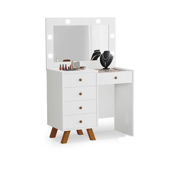 Essa penteadeira conta com um design clássico e compacto, mas ainda assim moderno, somando na decoração de seu quarto ou closet, sendo o espaço perfeito para organização pessoal. Conta com um espelho com quadro iluminado por led e gavetas laterais. Não acompanha banqueta. A p...