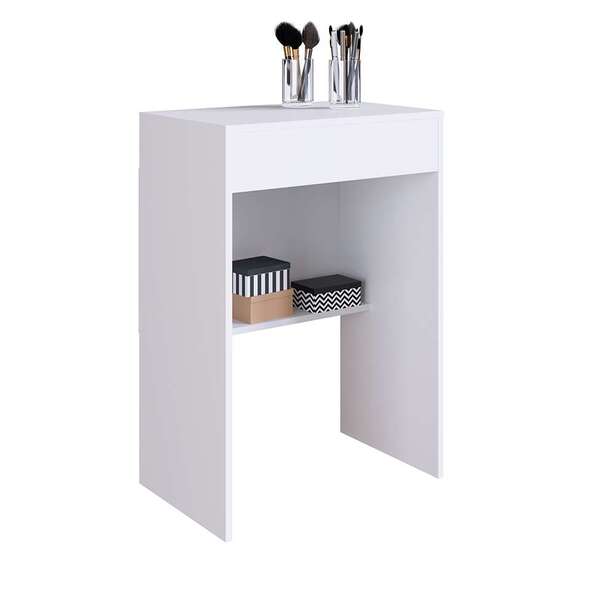 Que tal a penteadeira mimo?na hora de se arrumar antes de sair, nada melhor do que contar com um móvel que vai reunir todos os seus cosméticos necessários em um só lugar, né? Com a penteadeira mimo, você ganha uma forte aliada não só para a praticidade na rotina, mas também para a decoração do ambiente. O visual é charmoso, além da coloração que é bem fácil de harmonizar com o restante do mobiliário. Já a estrutura só oferece benefícios para o seu dia a dia: o nicho guarda aquelas caixinhas organizadores, enquanto o tampo articulado possui espelho e compartimento interno. Nenhuma dúvida que o bom gosto e a organização andarão sempre juntos em sua casa  ;)