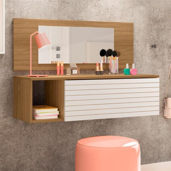 Apenteadeiraé ideal para guardar seus produtos de beleza, objetos de estudos e etc.fabricada em mdp/mdf bio-sustentável de 15 mm.espelho incluso.informações do produto:altura: 60 cmlargura: 90 cmcomprimento: 33,5 cminformações adicionais:possui gavetas: sim (1)nicho: sim (1)p...