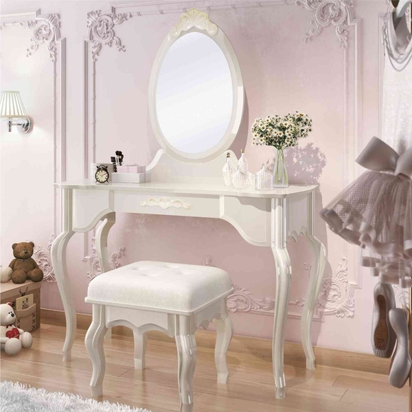 Penteadeira luis xv - off white a penteadeira luis xv é tão linda! Feita com todo cuidado no estilo retrô é a banqueta certa para você. Seus pés estilo palito são feitos com madeira reforçada, e todo material e acabamento fornecem ótima resistência e muita qualidade e confort...
