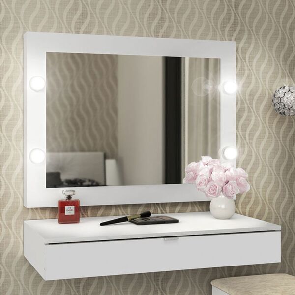 O(a) penteadeira suspensa branco - tecno mobili é produzido em mdp, e possui um grau de dificuldade de montagem: fácil. seu revestimento/acabamento é: pintura bp.