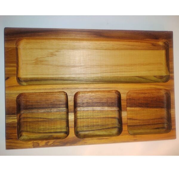 Petisqueira tábua de frios frutas carnes pães seja para você ou para presentear, petisqueira de aperitivos é ideal para aquela reunião com família e amigos! Leve mais charme para seus momentos especiais com nossa petisqueira de madeira, feita para servir e decorar com estilo. Garanta a sua bandeja de madeira teca para petiscos hoje mesmo! Medidas: comprimento:32.5 cm largura:22 cm altura:2.5cm   os objetos que ambientam as fotos são apenas sugestivos e não acompanham o produto. Cuidados com bandeja de servir:– hidrate com óleo mineral (ajuda na vida útil da petisqueira) fazer essa manutenção pelo menos uma vez por mês– evite água quente, lave sem detergente ou qualquer outro produto que seja agressivo, só utilize se realmente for necessário– seque à sombra (secar a petisqueira ao sol pode ocasionar rachaduras, trincos, e empenar sua petisqueira com divisórias) sirva com estilo e surpreenda! Adquira a sua agora! Obs: devido ao tipo de madeira, pode ocorrer variações de cores (algumas mais claras e outras mais escuras), não havendo possibilidade de escolha. Petisqueira madeira petisqueira personalizada tábua aperitivo bandeja petisqueira de madeira petisquera bandeja para festas petisqueira rústica petisqueira para queijos e frios tábua para queijos petisqueira pequena petisqueira moderna petisqueira gourmet petisqueira para mesa