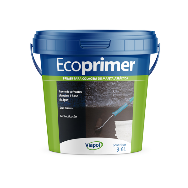 A Primer Ecoprimer Preto 3,6L Viapol nada mais é do que uma pintura de imprimação à base d"água composta de asfaltos modificados e aditivos isentos de solventes. Ela possui baixo teor de compostos orgânicos voláteis (VOC) e, por isso, é ideal para aplicação a frio sobre superfícies de concreto, argamassa, alvenaria e fibra de vidro. Em resumo, a ecoprimer é utilizada como primer para substrato em áreas que receberão impermeabilização com mantas asfálticas.