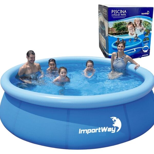 Com a piscina da importway a diversão está garantida! Com capacidade de 4600 l, você e sua família podem curtir juntos. Ideal para quem quer praticidade, ela possibilita ser guardada ou ser levada para qualquer lugar. Surpreenda-se com a qualidade desse produto e faça bom proveito.   piscina borda inflável 4600l   especificações: - capacidade de água: 4600l; - material: pvc; - fácil de montar; - com válvula de drenagem; - acompanha kit de reparação; - revestimento é suportado pelo anel inflável; - possui 3 camadas de pvc laminado de alta resistência, oferecendo uma excelente durabilidade.   dimensões do produto montado: - diâmetro: 3m; - altura: 76 cm.   conteúdo da embalagem: - 1x piscina borda inflável 4600l.