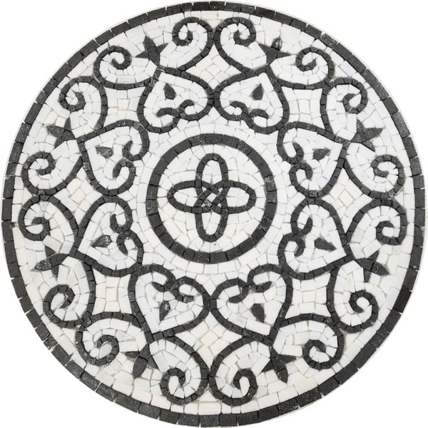 Piso mandala em mosaico feito com pedras esta mandala é uma representação decorativa moderna de um piso de entrada romano incorporando elementos como espirais que simbolizam crescimento constante pontas celtas para proteção e vitória e o nó celta no centro para representar a eternidade e a interligação de tudo no mundo material. pedras utilizadas:  mármore branco espirito santo e granito são gabriel. os tons podem variar conforme o lote das pedras. significado da mandala: esta mandala é composta por vários elementos significativos: a mandala é baseada em um antigo piso de entrada romano e foi reinterpretada para fins decorativos modernos mantendo as cores tradicionais do mosaico romano em preto e branco. Os principais motivos presentes são: a voluta espiral: representa o desenvolvimento e crescimento contínuo semelhante às espirais encontradas na natureza como os ramos da videira as conchas do mar e os chifres do carneiro. as 4 ou 8 pontas: essas pontas remetem a um motivo celta de proteção com oito pontas onde cada uma é adornada com um tridente. Essa configuração tem o propósito de inspirar o portador a buscar a vitória obter invencibilidade e expandir sua percepção. no centro o nó celta de quatro lados: este nó representa a eternidade continuidade e a interconexão de todas as coisas no mundo material. aplicações: nossos produtos são entregues montados de fácil aplicação - ideal para ambientes internos e externos                       especificações técnicas do mosaico: feito com pedras - mármores e granitos de todo o brasil e importados da europa e ásia - para obter todas as cores desejadas em pedras naturais; vem todo montado sobre tela só colocar conforme manual de colocação resistência e durabilidade em área interna e externa; espessura de 10 mm – mesma espessura do porcelanato ou piso cerâmico liso e agradável para uso diário; mosaico feito integralmente à mão com técnica do mosaico romano;   dúvidas frequentes: como é transportado? - o mosaico é protegido em plástico bolha e embalado em uma caixa de papelão. Em caso de tamanhos maiores também é colocado em uma caixa de madeira. Vale ressaltar que ele é flexível o que permite dobrá-lo facilitando o envio para a transportadora. A transportadora coleta aqui em nosso ateliê e entrega no seu endereço. quanto tempo leva para confeccionar a peça? - nosso prazo de confecção é de até 31 dias úteis. No entanto se você tiver urgência por favor entre em contato conosco para verificar a possibilidade de produzirmos em um prazo menor. é possível mudar as cores e materiais? recebemos frequentemente essa pergunta no entanto não recomendamos fazer alterações nas cores e materiais padrão. Fazer mudanças pode resultar em um resultado que pode não atender às suas expectativas. posso fazer em outro tamanho? para tamanhos que não estejam disponíveis no site você pode entrar em contato conosco pois realizamos encomendas sob medida.