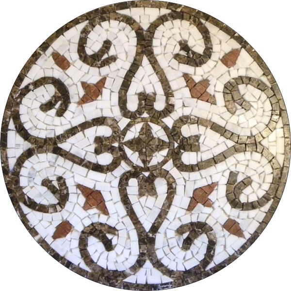 Piso mandala em mosaico feito com pedras esta mandala é uma expressão única de arte e significado inspirada em um piso de hall de entrada romano original. pedras utilizadas:  mármore branco espirito santo granito marrom imperador e mármore rosso verona. Os tons podem ...