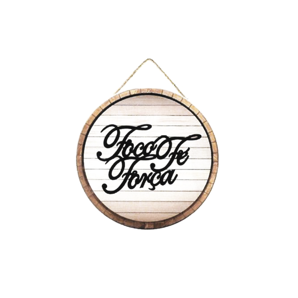 Essa placa são especiais por se tratar de 2d, uma placa colada detalhadamente em outra, usando o MDF de 3mm cortada a laser, papel couchê na impressão gráfica imitando, madeira rústica e letras cortadas a laser em MDF na cor preta de 3mm, com os dizeres:(foco e força) e corda para compor o quadro. Essas placas imitam um estilo rústico em formato redondo, imitando tampa de barril. São lindas e perfeitas para decoração de interiores, áreas de lazer. A placa mede: 35cm de largura por 35 cm de altura + corda. Um presente ideal e de bom gosto para amigos, familiares e até mesmo para você.  Não perca tempo, a partir de 3 peças o desconto será garantido, podendo ser com dizeres diferentes. Customizamos novas frases...
